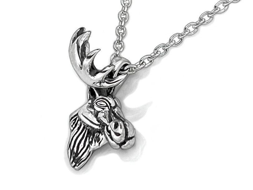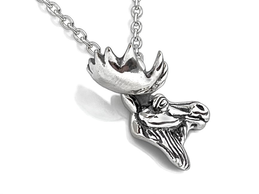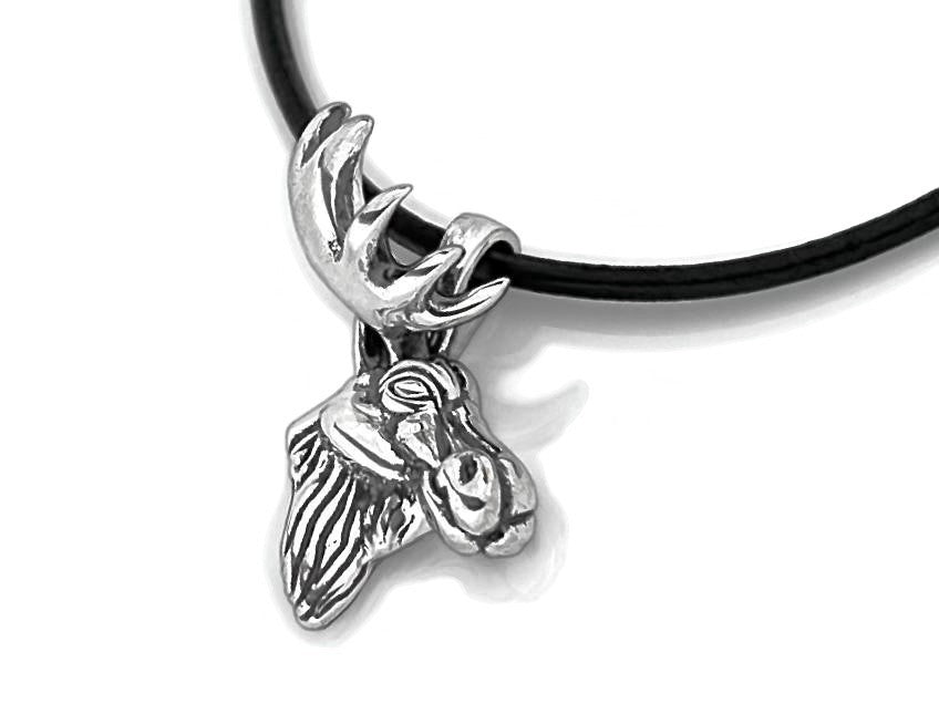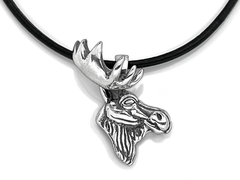 Handmade moose head pendant in sterling silver.